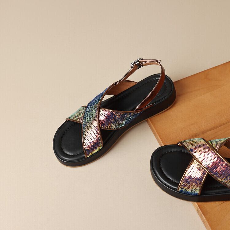 流行の本革レザー厚底シューズスパンコールサンダルが新登場!キラキラ輝くスパンコールと厚底の組み合わせが、あなたの足元を一気にオシャレに演出します。厚底デザインは脚長効果もあり、スタイルアップも叶えてくれます。また、本革レザー素材は柔らかく足なじみが良いため、長時間の着用でも快適さをキープします。サイズも22cmから25cmまで幅広く展開しているので、サイズの心配もありません。デイリーはもちろん、パーティーシーンにもぴったりな一足です。自分へのご褒美や特別な日のプレゼントに、ぜひおすすめしたい逸品です。※お手入れ方法をご確認ください。※写真と実物では色味が異なる場合があります。