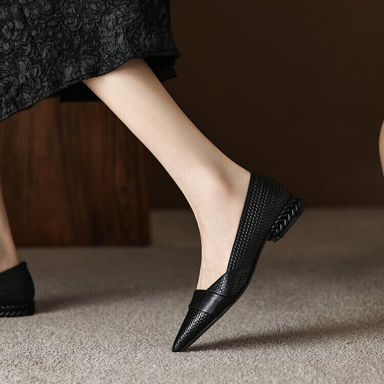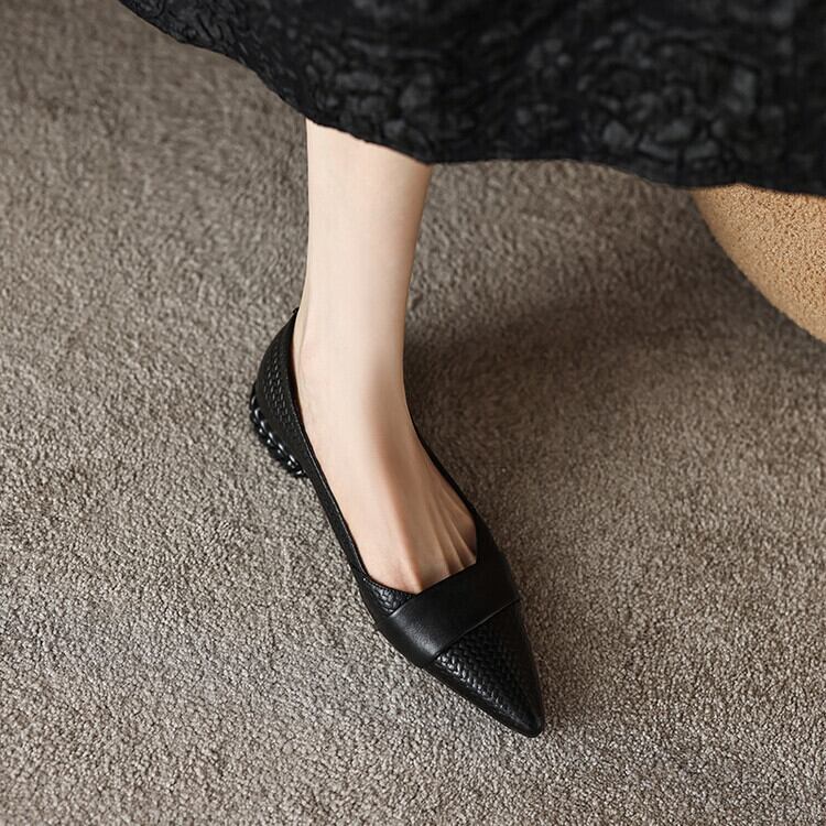 23新作レディースプレスドフラワー本革靴通勤旅行シューズパンプス3色22cm~26.5cm #782ブラック⭐配送無料⭐
