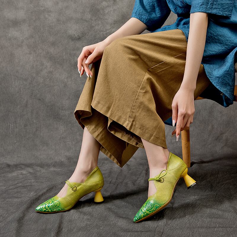 23新作レディースプレスドフラ本革靴通勤シューズパンプス疲れない個性ハイヒール22.5~25cm #785⭐配送無料⭐