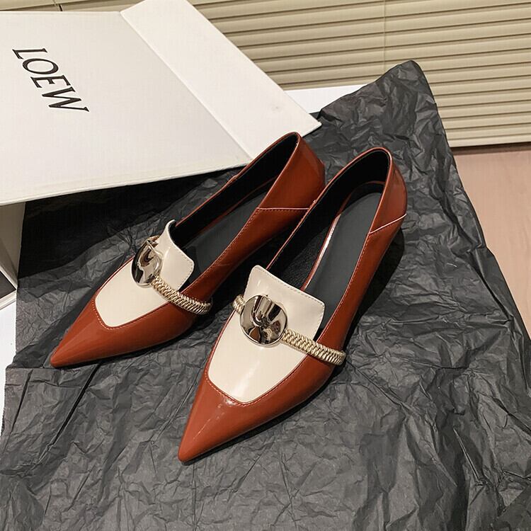 23新作レディース本革靴お洒落個性シューズ パンプスハイヒール 21.5cm~25.5cm ブラウン #811⭐配送無料⭐