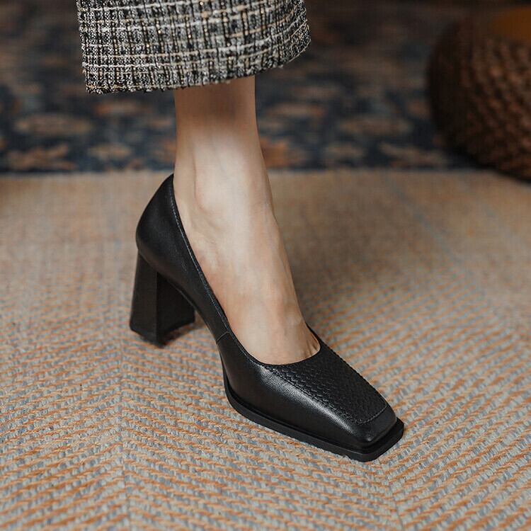23秋冬新作レディース本革靴お洒落個性シューズ パンプスハイヒール 22cm~25cm ブラック#822⭐配送無料⭐