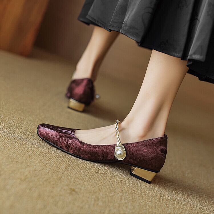 高級感エンボス本革パンプス 通勤 シューズレディース本革靴3E製作お洒落#963-3
